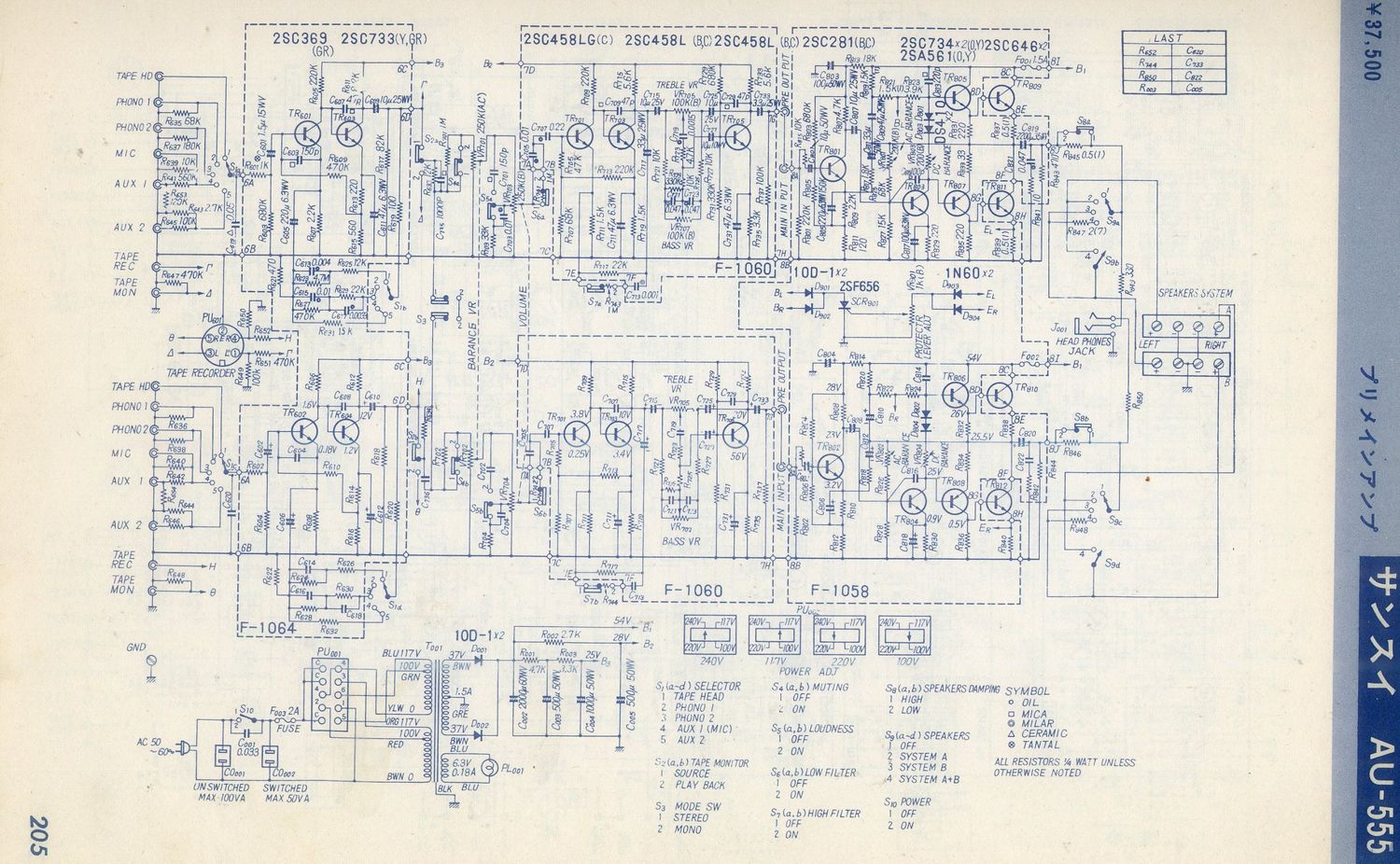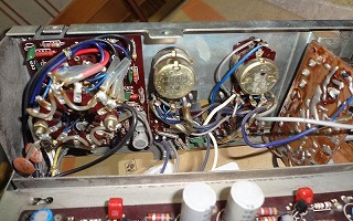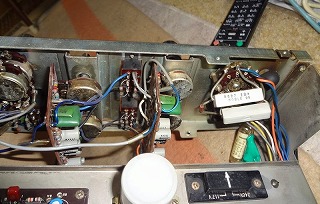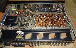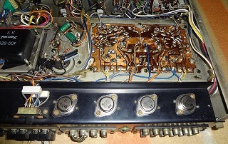 基盤上修理 回路図参考 AU-555_kairozu.jpg へのリンク 1)フューズ交換 2)パワーTR 4個交換 3)前段TR数個交換 4)出力コンデンサー交換 5)入力コンデンサーとケミコン数個交換 |