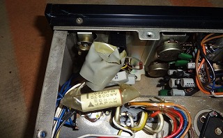 上部蓋を外したところ フューズ断線していました 取り合えず音は出ていませんでした (当然ですね) 部品(ケース+α)取り? |
