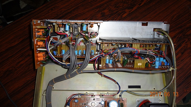 リアー眺めます 40年前に新品で購入その後5年ほど使用し 35年間休止させておりました この度(2017年3月)に点検したところ ガサガサ・バリバリノイズが出て使用不可となりました。 ヤッパリ部品の経年劣化が有りますね。 総点検します。 |